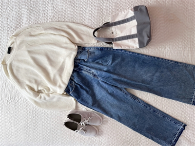 - 小さめバッグ:重心が上に見えて、全体のシルエットが軽く見える。